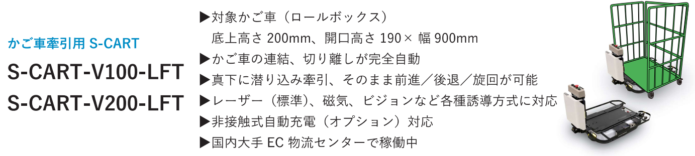 レーザーセンサーで特徴物から地図を作成、自己位置を推定しながら走行し、ガイドレス機能でレイアウト変更にも簡単に対応できる、人に代わる自動搬送台車、S-CART。