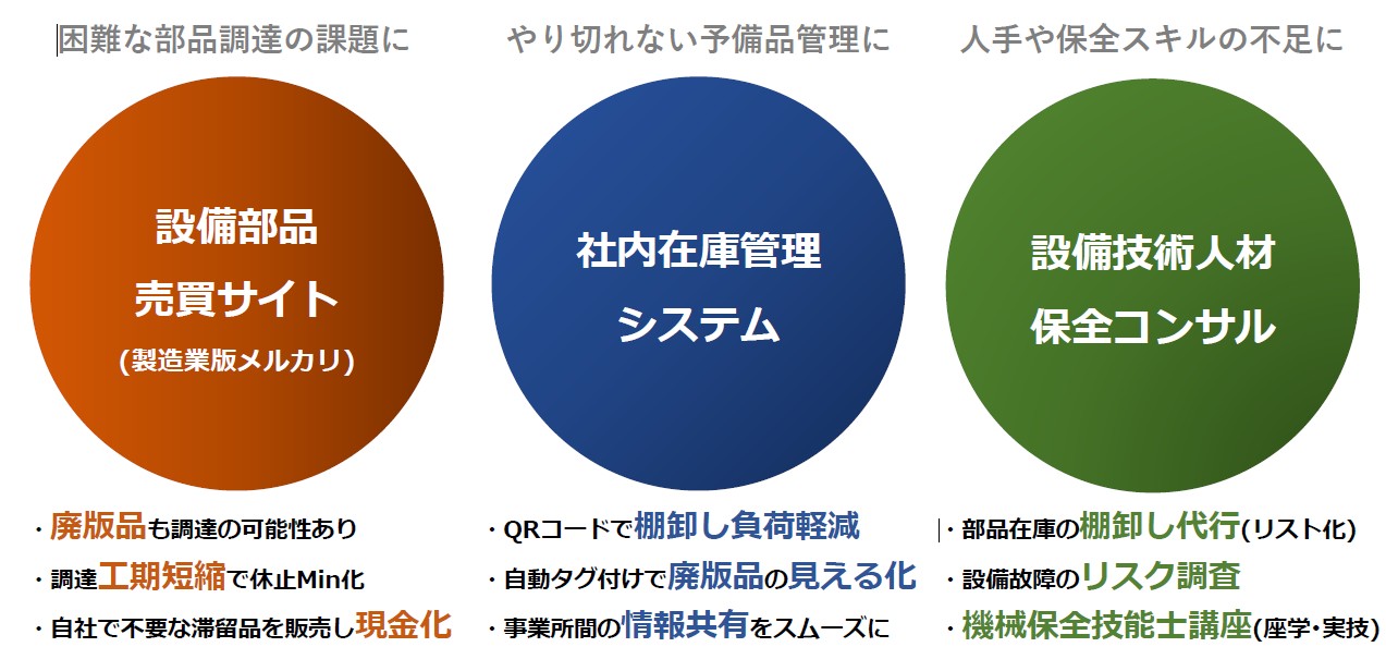 部品・情報・人材を共有し、製造業全体の保全力を底上げ します。