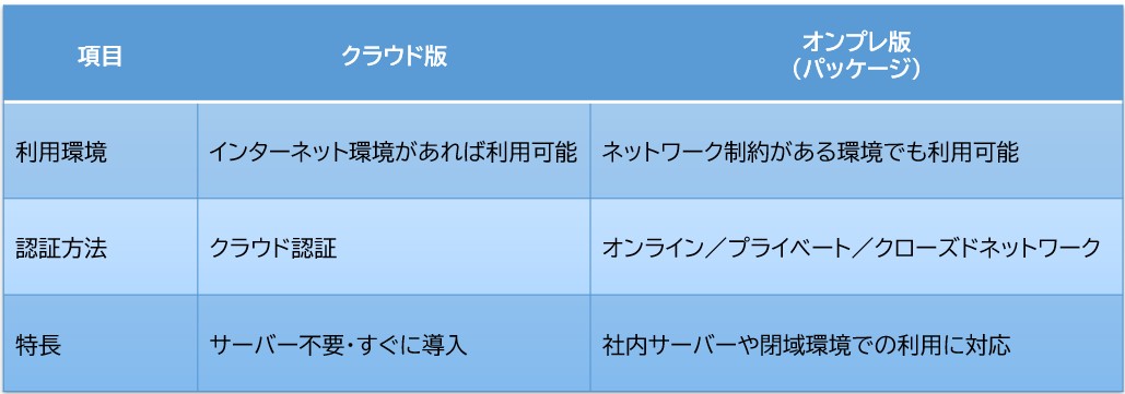 オンプレ版 → セキュア環境、閉域網、ネットワーク制約がある企業(製造業・官公庁など)