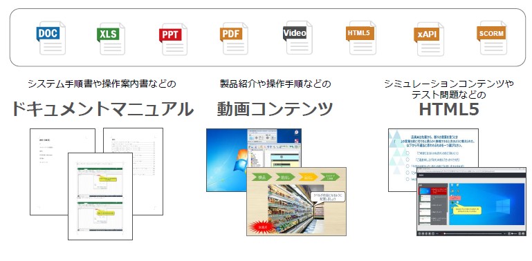 ドキュメント・動画・eラーニング教材にワンクリックで出力可能。