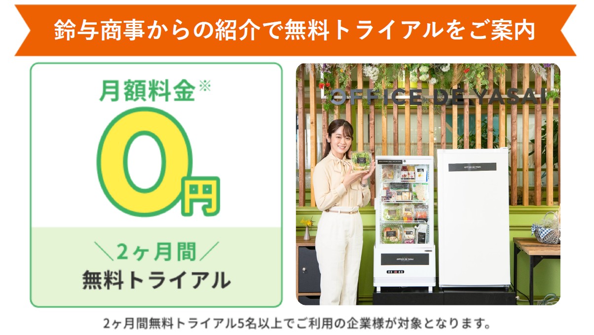鈴与商事の紹介で⽉額利⽤料2ヶ⽉無料トライアルをご案内いたします。