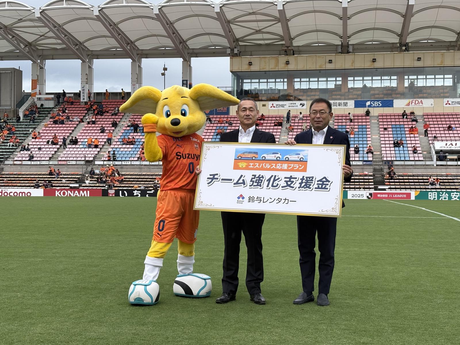 鈴与レンタカーからエスパルスへ、2024年シーズンにおける「エスパルス応援プラン」の売上金の一部に、鈴与レンタカーの協力金を加えた合計10万円をチーム強化支金として、贈呈しました。