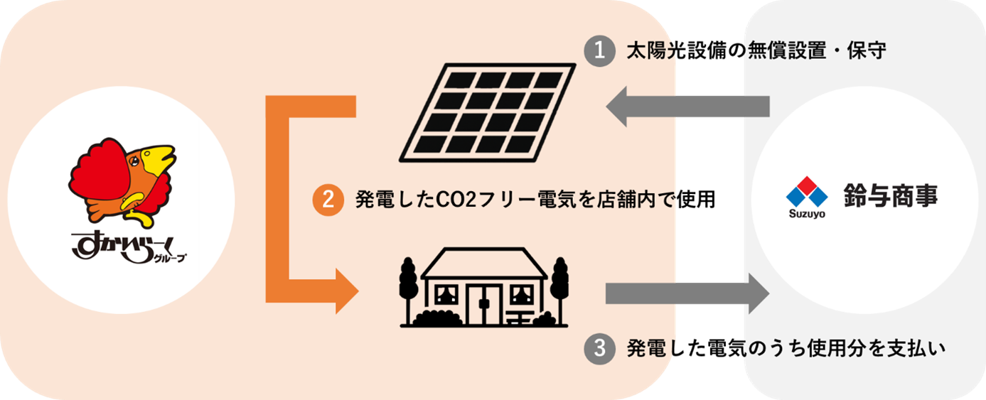 鈴与商事とすかいらーくHDは、本取り組みを通じ、脱炭素社会の実現に向けた再生可能エネルギーの普及を推進してまいります。