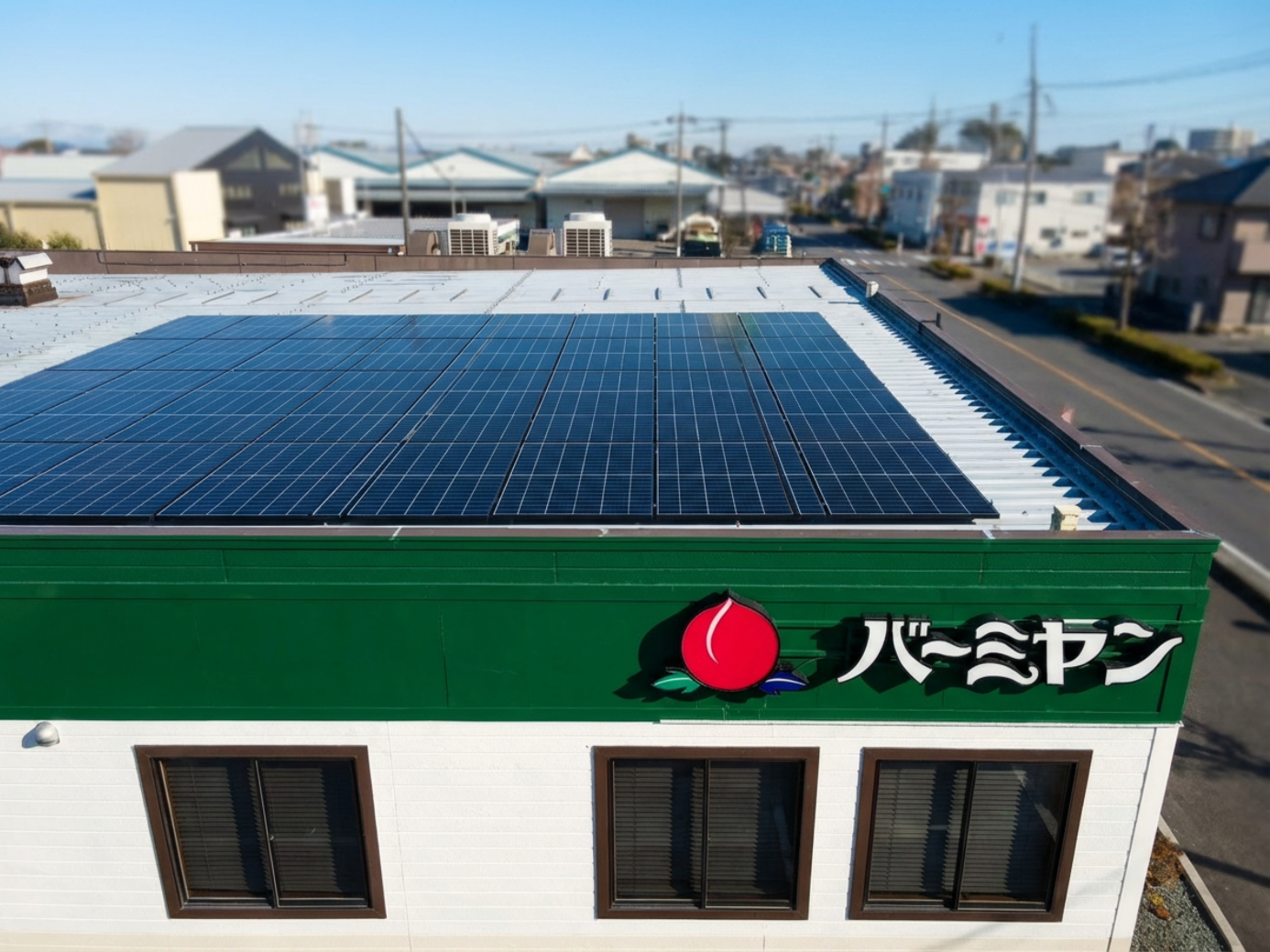 この取り組みをさらに推進するため、すかいらーくHDは、鈴与商事の提供するオンサイトPPAサービスによる太陽光発電設備の導入を決定いたしました。まずは3店舗(バーミヤン甲府下飯田店、バーミヤン三郷戸ヶ崎店、バーミヤン宇都宮徳次郎店)への導入を行い、他店舗への導入も進めていく予定です。
