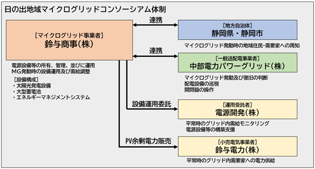 鈴与商事株式会社(本社:静岡県静岡市、代表取締役社長:伊藤 正彦、以下「鈴与商事」)と電源開発株式会社(本社:東京都中央区、代表取締役社長:菅野 等、以下「電源開発」)は、静岡県(県知事:鈴木 康友)、静岡市(市長:難波 喬司)、中部電力パワーグリッド株式会社(本社:愛知県名古屋市、代表取締役社長執行役員:清水 隆一、以下「中部電力PG」)、鈴与電力株式会社(本社:東京都港区、代表取締役社長:大野 裕之、以下「鈴与電力」)の間で締結した「地域マイクログリッド※の運用に係るコンソーシアム基本協定書」に基づき、港湾エリアにおいて経済産業省のマイクログリッド構築に係る補助金の採択を受けた取組みとしては初めてとなる、静岡市清水区日の出地区での地域マイクログリッドの構築を進めてきました。今般、2026年2月15日にマイクログリッドの発動試験を実施したことをお知らせいたします。