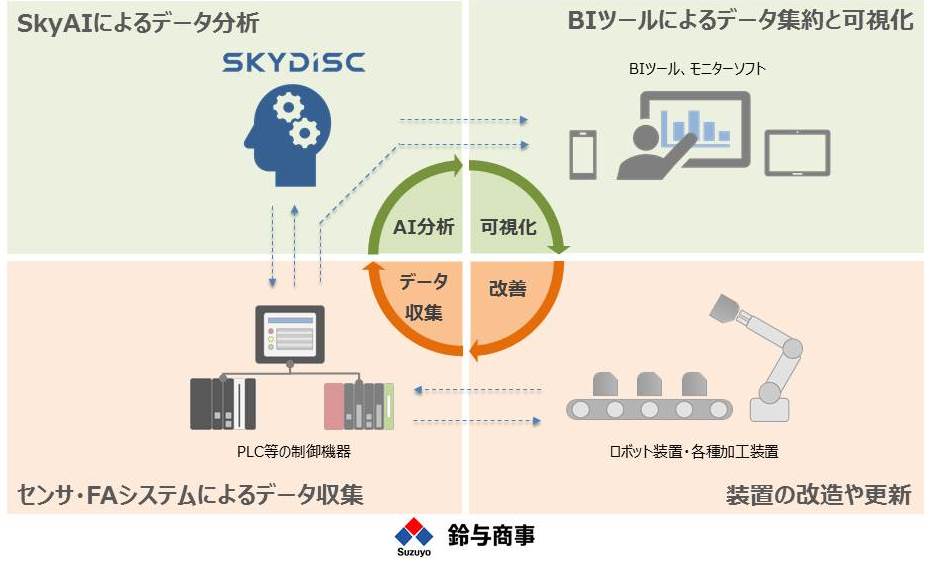 こうした中、当社は2019年1月にスカイディスクと業務提携し、当社が持つデータ収集などの制御技術と、スカイディスクが得意とするAIによる時系列データ解析技術を融合させることで、製造工程で発生する不良要因特定や、熟練者の勘や経験で行われていた製造技術・ノウハウをシステム化することにより、製造現場の効率化を図るサービスの構築に取り組んでおります。