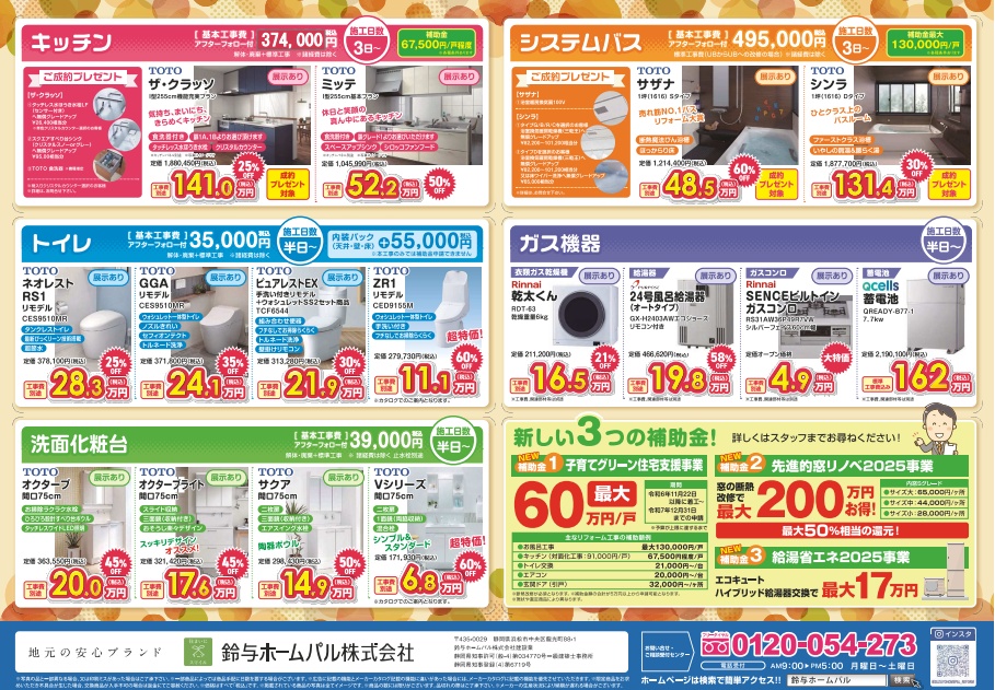 また、国土交通省・経済産業省・環境省の3省連携事業『住宅省エネ2025キャンペーン』中です。補助金を活用してお得にリフォームできるチャンスです♪お気軽にご相談ください。