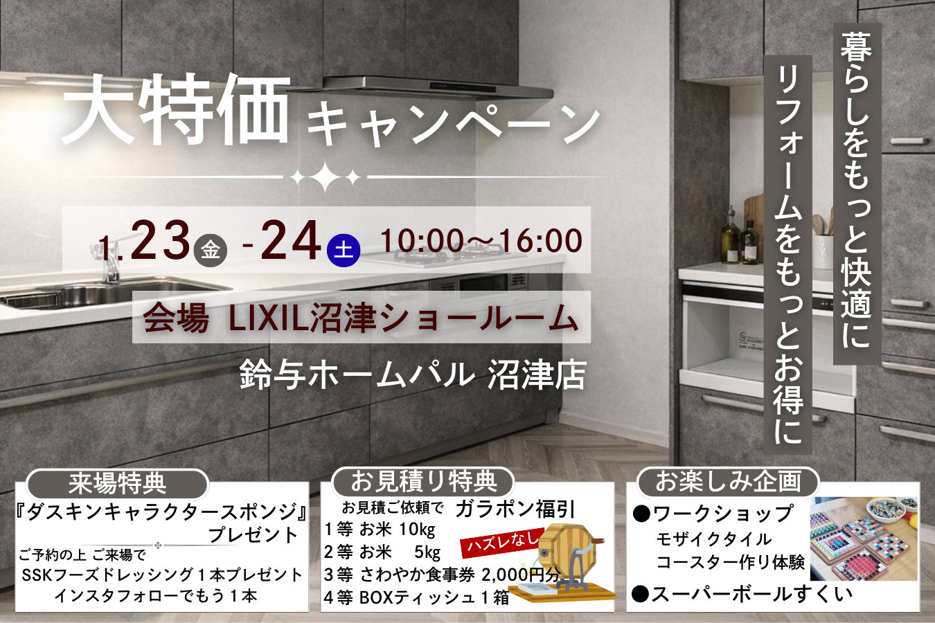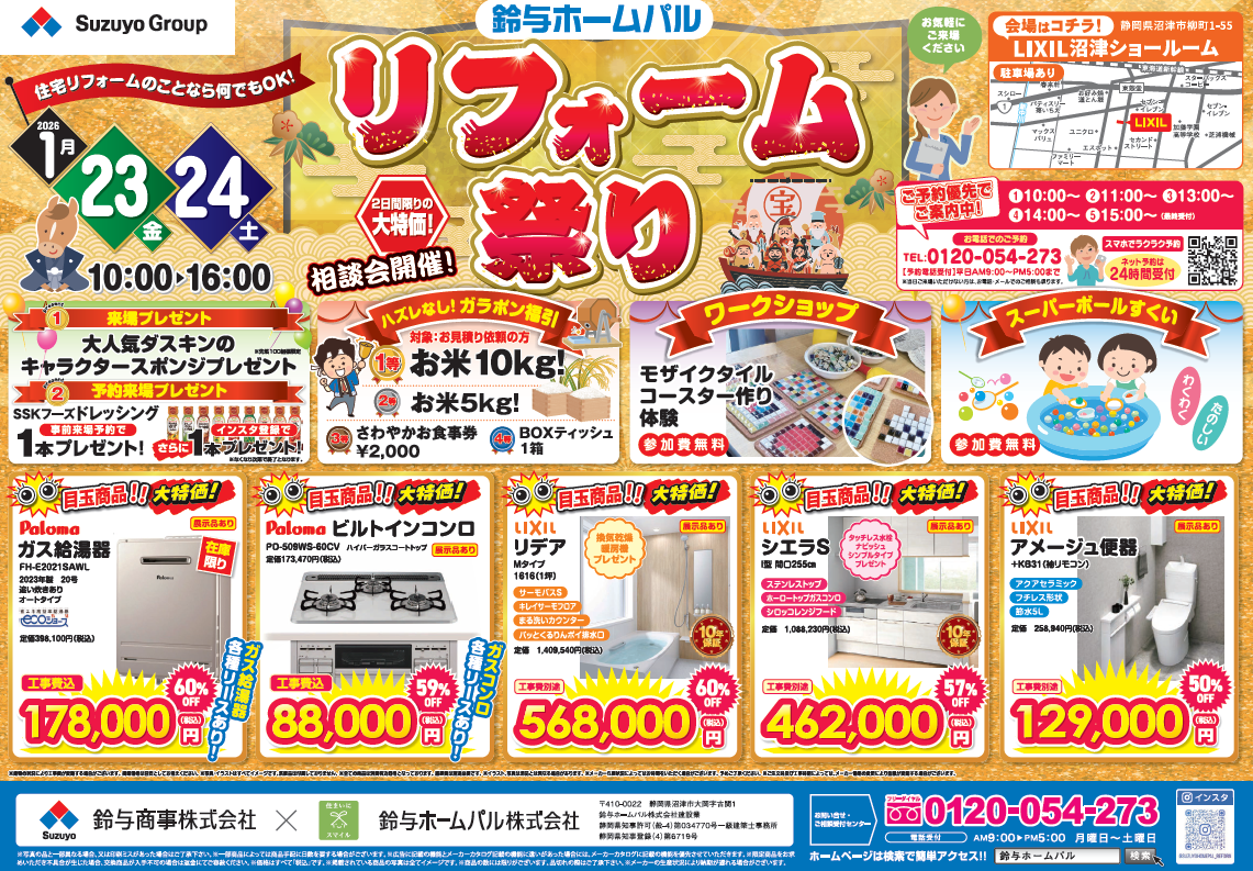 【鈴与ホームパル沼津店】1/23~1/24 住まいのリフォーム祭り