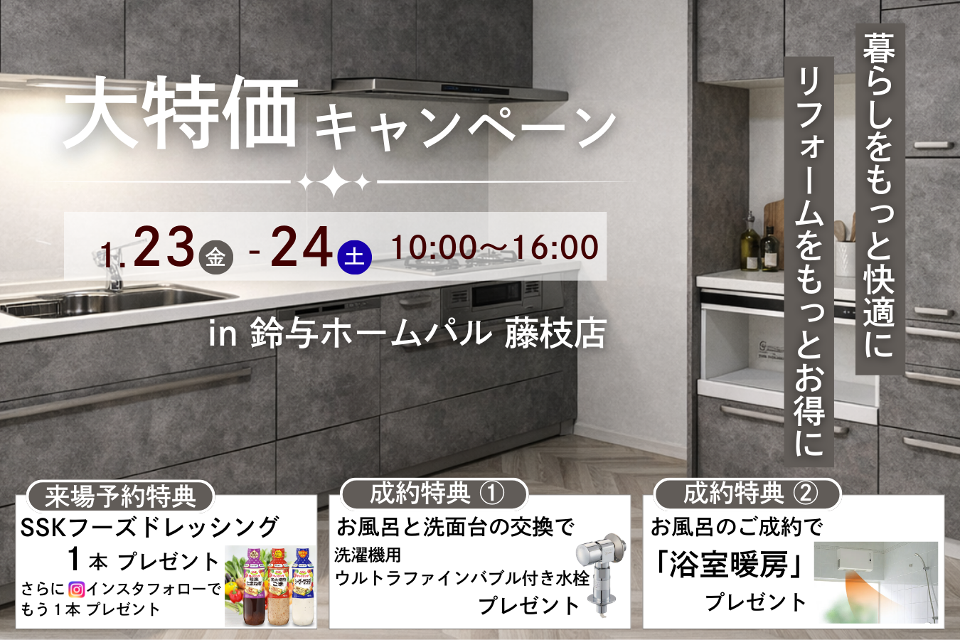 住宅リフォームの鈴与ホームパル藤枝店では、1月23日(金)~24日(土) 各日10時~16時に住まいの”リフォーム相談会”を開催します!