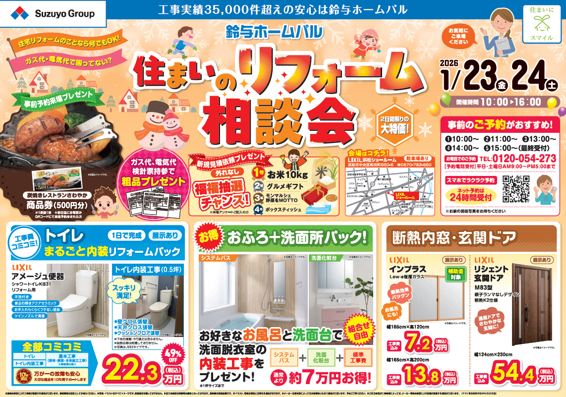 【鈴与ホームパル浜松店】1/23~1/24 住まいのリフォーム相談会