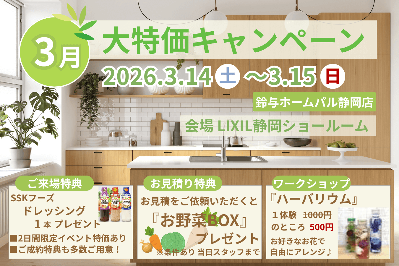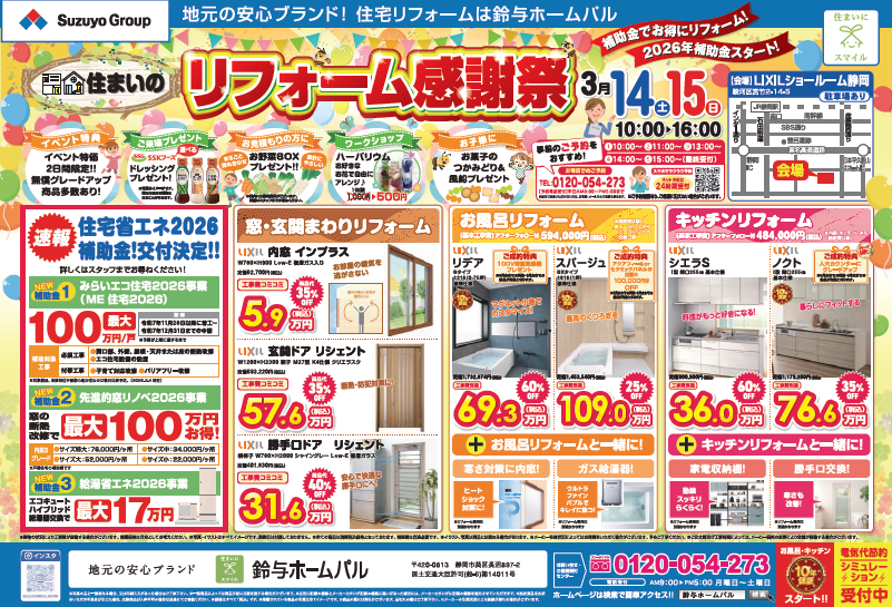 鈴与ホームパル静岡店では2026年3月14日(土)~15日(日) 各日10時~16時LIXILショールーム静岡にて”住まいのリフォーム相談会”を開催いたします!