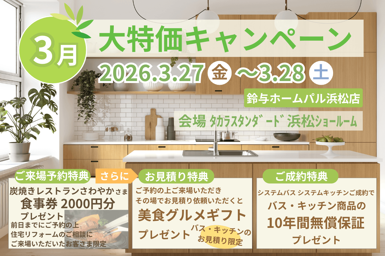 鈴与ホームパル 浜松店では3月27日(金)~28日(土) 各日10時~16時タカラスタンダード浜松ショールームにて”住まいのリフォームフェア”を開催します!