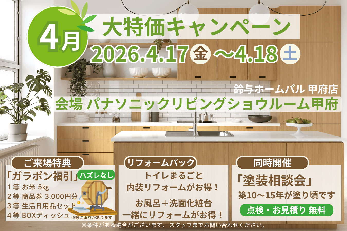 【鈴与ホームパル甲府店】4/17~4/18 わくわくリフォームフェア