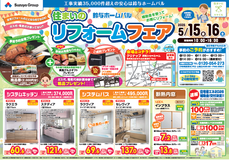 【鈴与ホームパル浜松店】5/15~5/16 住まいのリフォームフェア